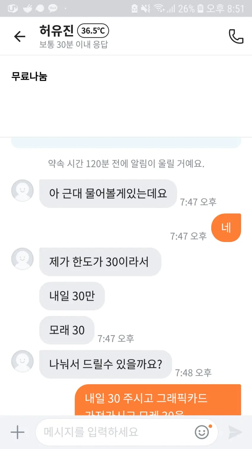 대학생인거아님?? 그럼 가능성은 있는데ㅋㅋ 30선입금 으로 예약하고 두번째 받을때 보자고해야지 그럼