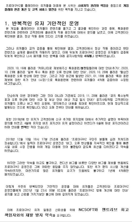 H2는 잦은버그와 선수단확장 위시리스트확장등 손쉬운 유저편의성패치도 안하며