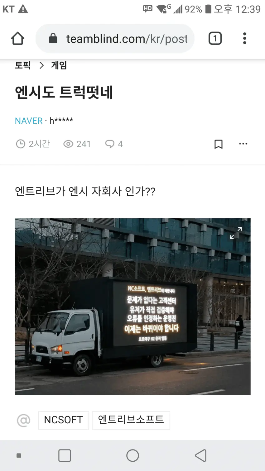 nc소프트 직원 적반하장 박제