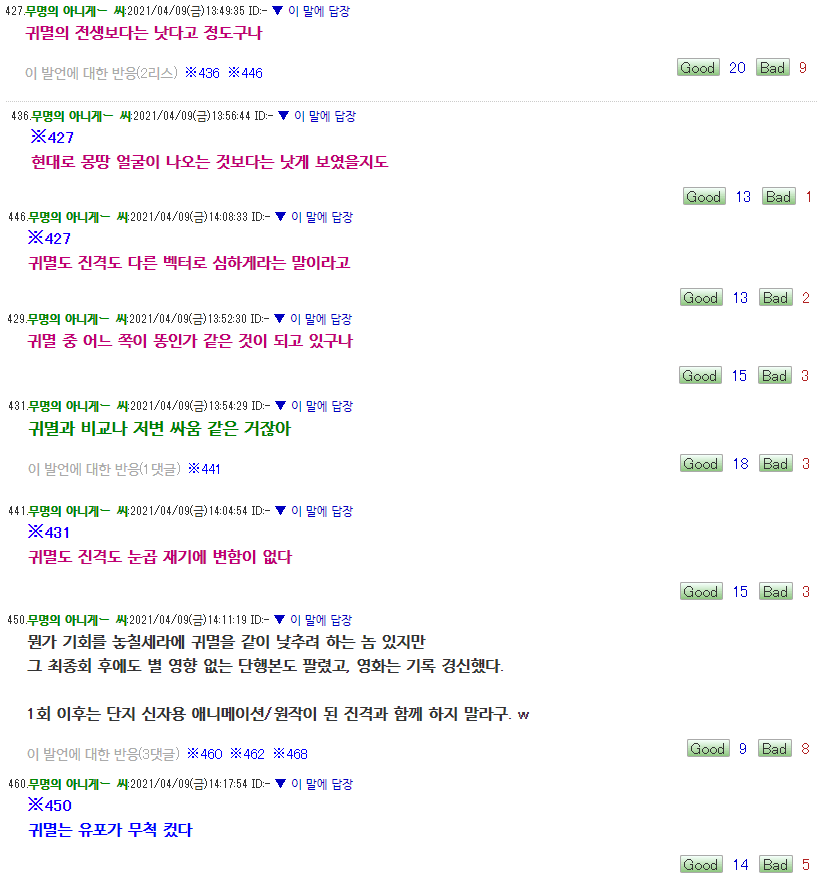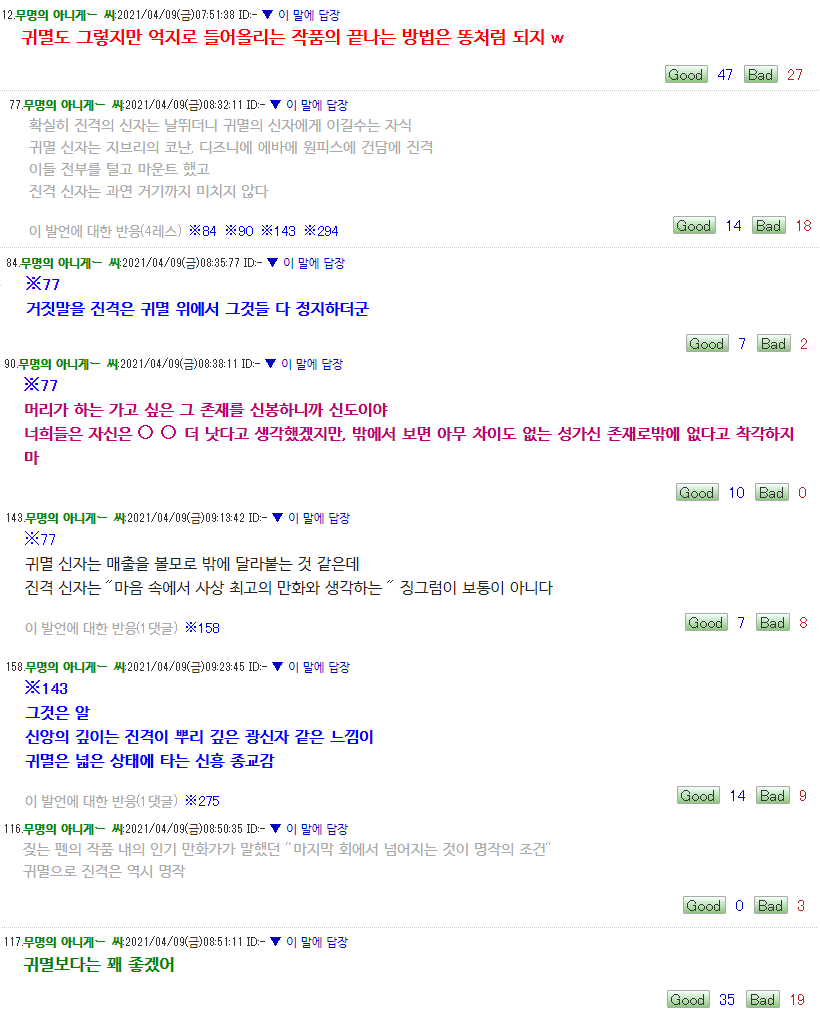 귀멸도 진격도 눈꼽 코딱지인데 싸우지마 ㅋㅋㅋㅋㅋㅋㅋ