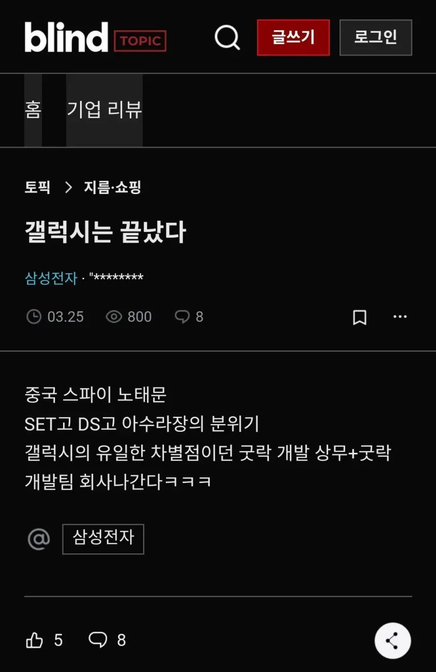 중국 스파이 노태문SET고 DS고 아수라장의 분위기갤럭시의 유일한 차별점이던 굿락 개발 상무+굿락 개발팀 회사나간다ㅋㅋㅋ