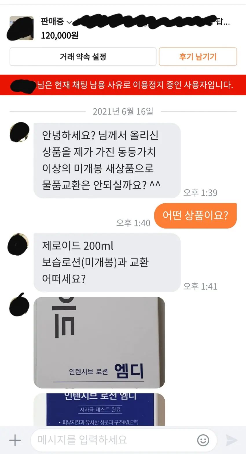 12만원에 물건 팔려고 올려왔었는데 갑자기 물물교환하자고 하길래 봤더니