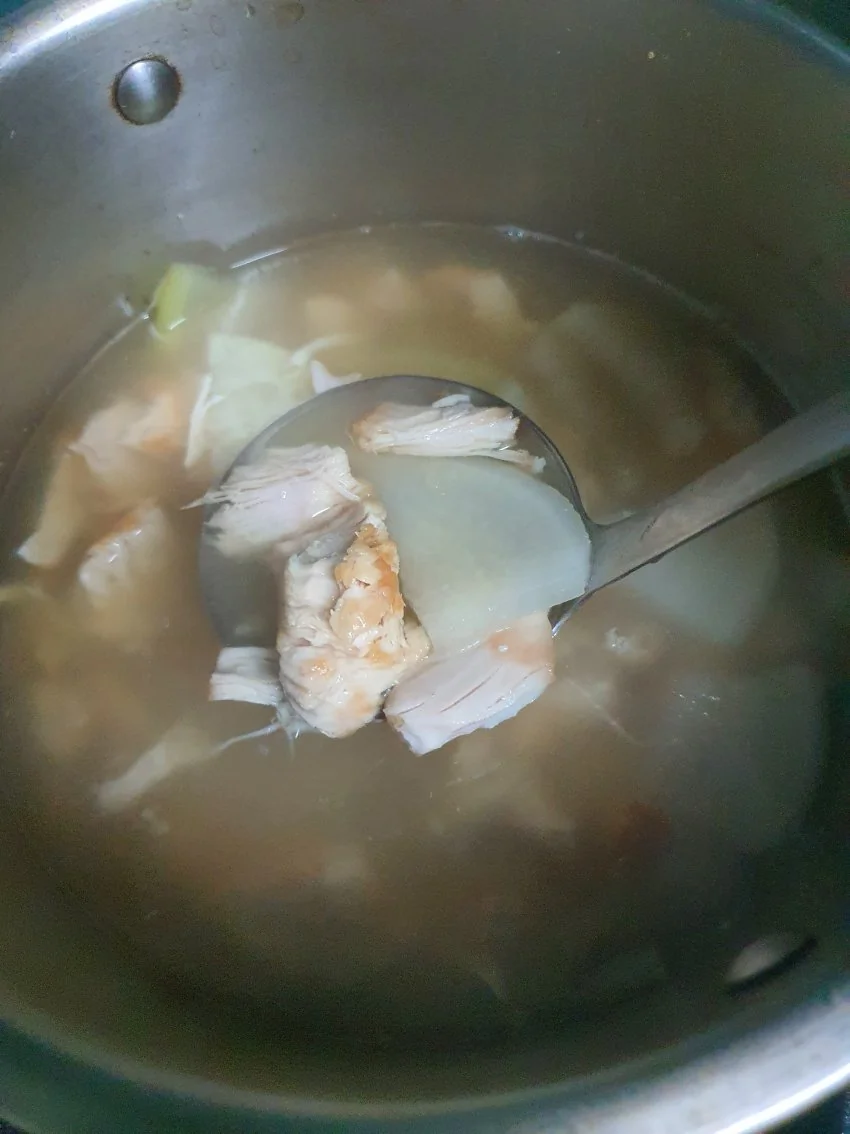 군대 닭곰탕을 뭔 순살로 끓임 나는 뼈 조각 닭넣었는데
