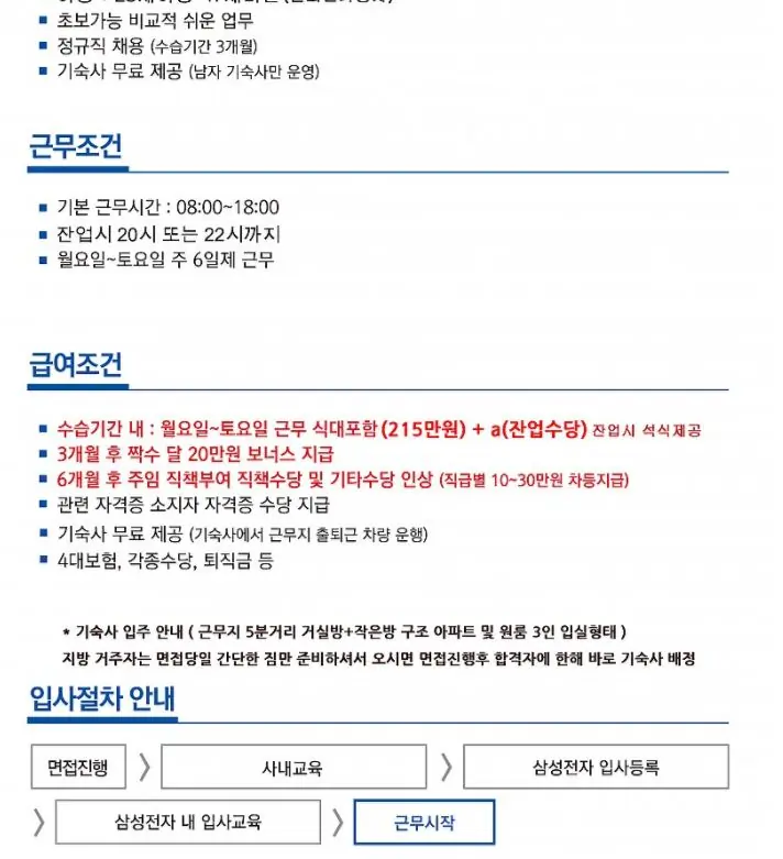 삼성이 공장에 들어가는 직원 공장 새로 짔는다고 많이 뽑는다고 생각할 수도 있는데 어차피 4년안에 존나 퇴사 해서 그냥 많이 뽑아 두는거다. 돈 때문에 버텼는데 나중에 나이먹으면 병원비 진짜 많이 깨지겠다는 생각에 바로 그만뒀다. 삼전 개꿀이라고 하는 사람들 진짜 3개월만 일 시켜보고 싶다. 연봉같은거 궁금하면 질문해라