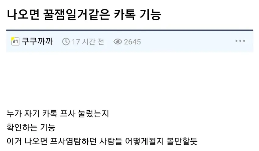 누가 자기 카톡 프사 눌렀는지