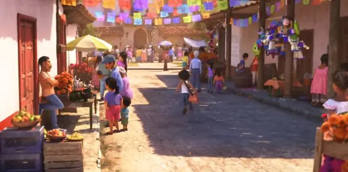 코코에서 볼 수 있는 픽사의 다른 작품 캐릭터들 모양의 피냐타