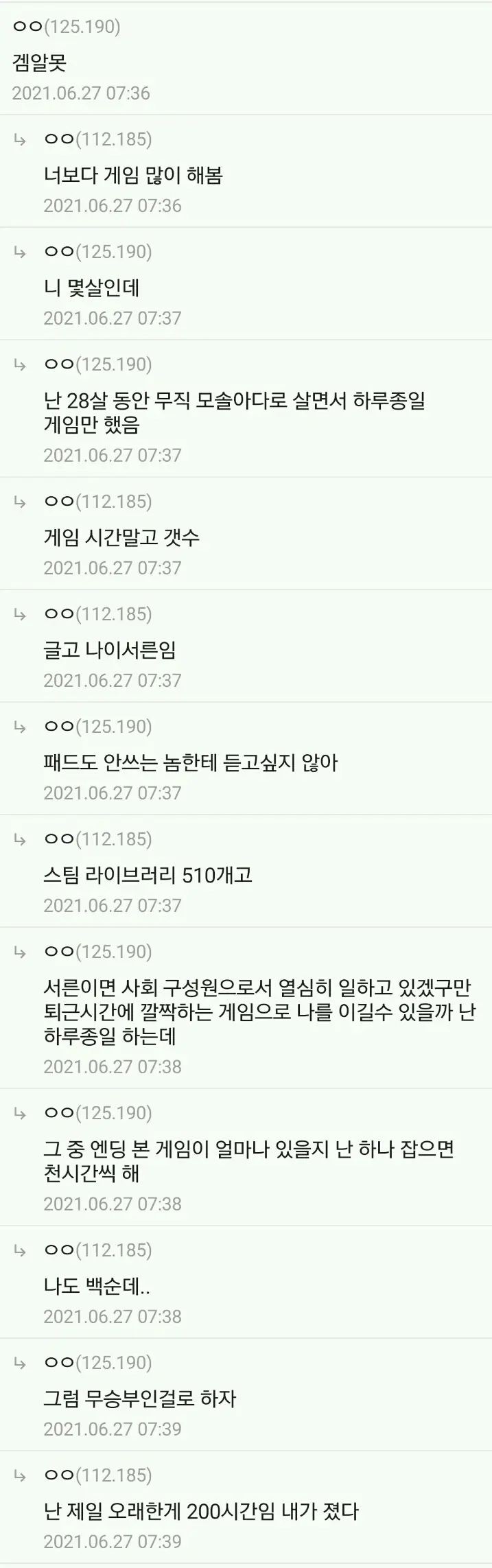 그냥 게임 좋아하면 저럴 수도 있는거 아닌가? 오히려 사회 눈치 때문에 의무감에 짓눌려 살고 행복을 잃는 사람들이 많은거 같음. 요즘같은 개인주의 시대에 진정한 행복이 저런거지 ㅇㅇ