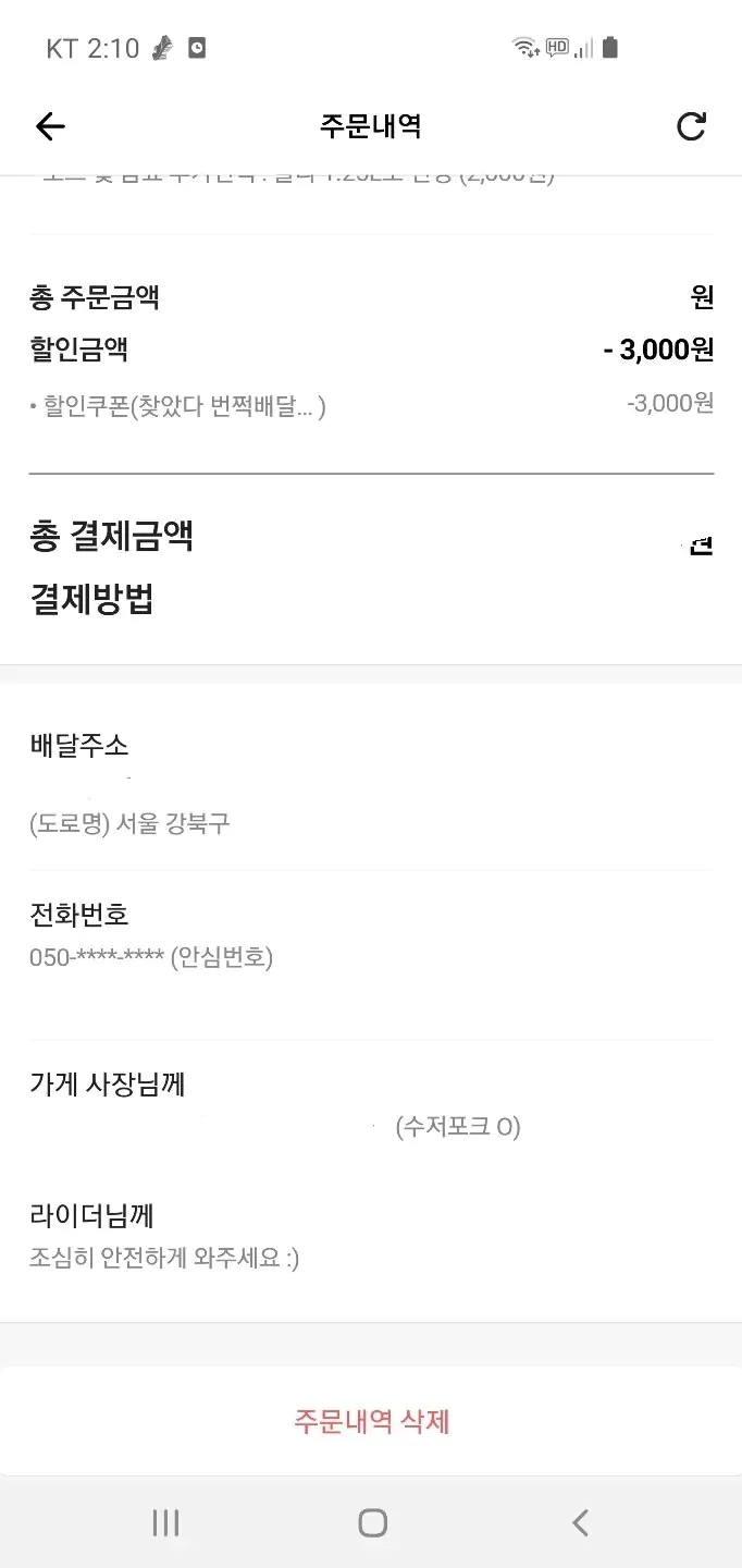 음식이 식어서 오는경우나 마트 또는 편의점 나가게 되는 상황이만들어지면 내가 잘못한게 아닌이상 난 이점은 별점을 좋게 주질 못하겠네