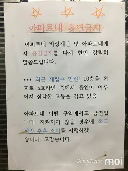 밑층에 실내흡연충 살았었는데 여름에도 창문을 열어놓을수가 없었음 관리실에 몇번을 얘기하고 경찰 신고해도 해결 안되고 고래고래 소리지르면서 싸우다가 못버티고 결국 내가 이사감 계속있다간 미쳐서