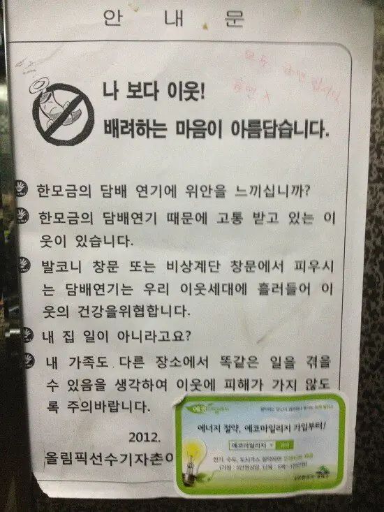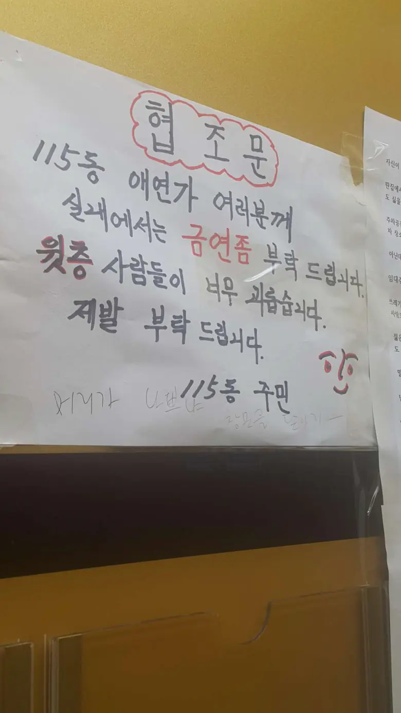 아파트 흡연장소 특) 옆에보면 금연구역 스티커 붙어있음