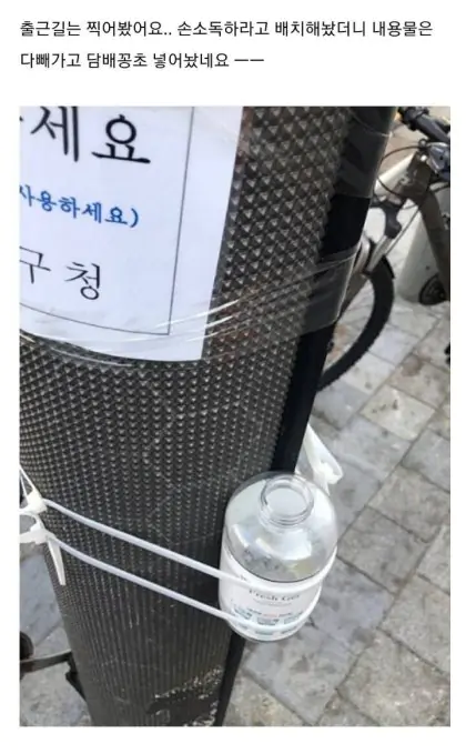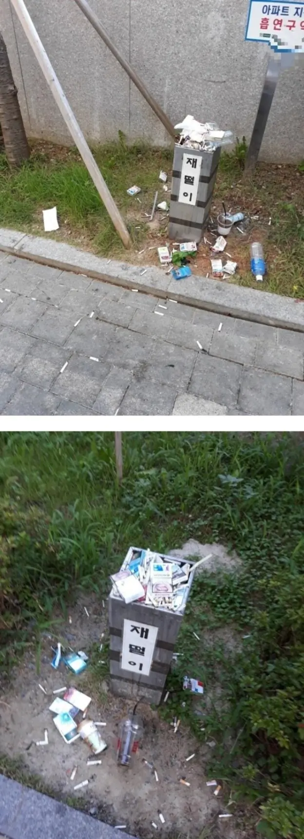 흡연충들은 다들 수전증 있어서 꽁초 제대로 못 넣음