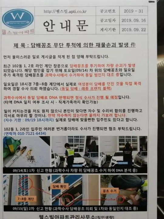 아파트사는데 주말아침마다 담배냄새올라오는거 어떤새퀴야