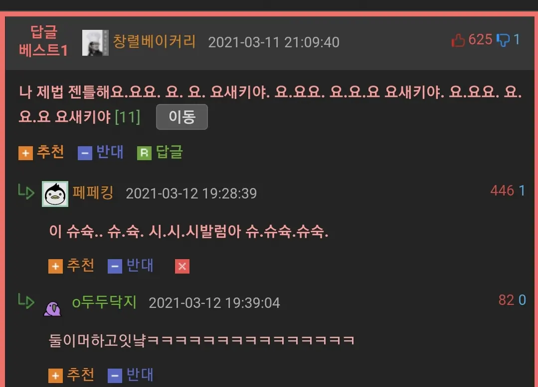 답변인 그냐넘어가는나제법젠틀해요까지 하나같이 다 레전드