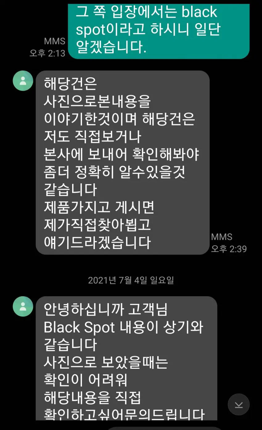 왜 black spot 클레임 대응을 한건지 이해가 안됨