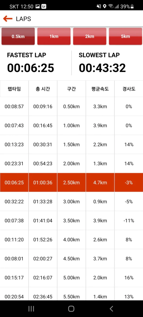 빨간구간 아래에 평속 0.9km 찍힌 이유가 그거때문임미다