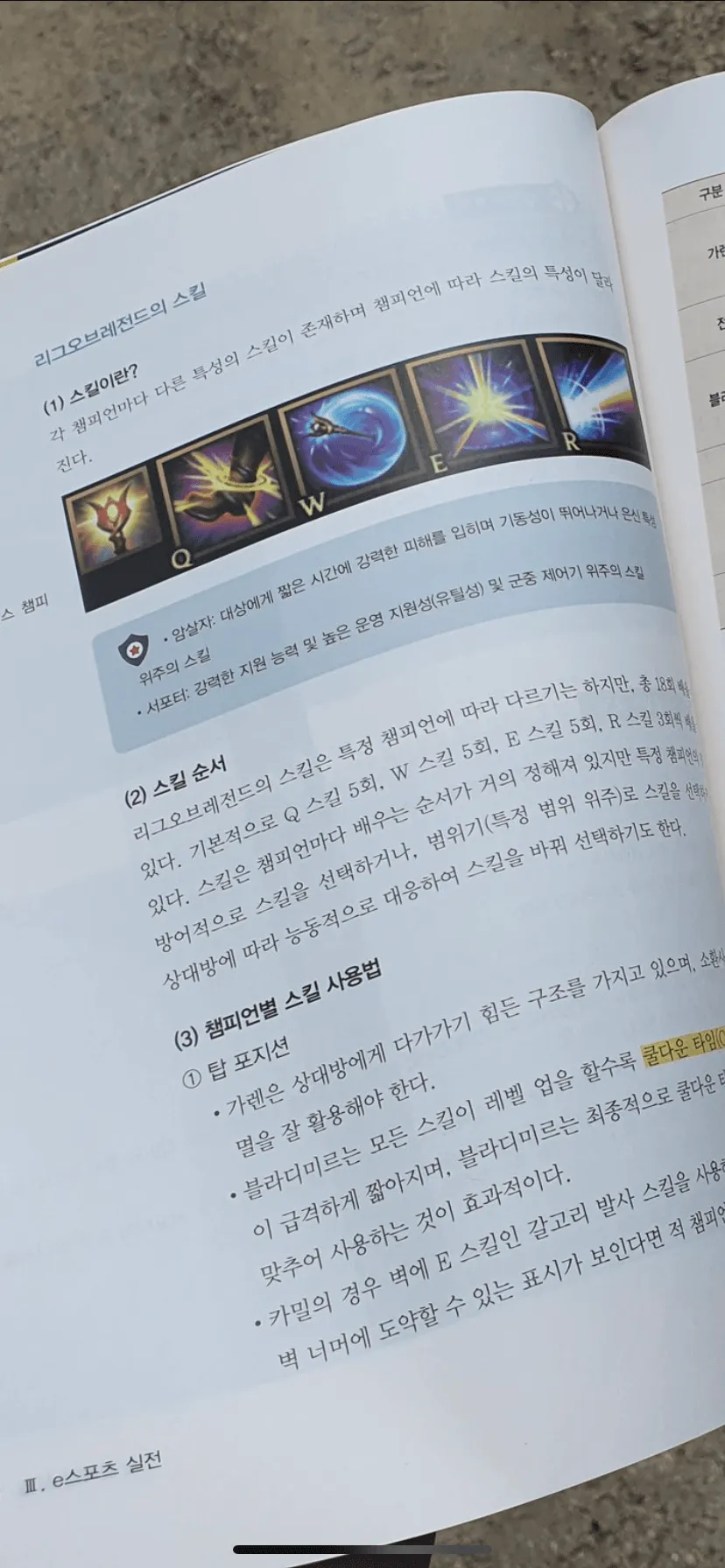 아니 롤마냥 스킬 자주 바뀌는걸 교과서로 내면 뭐할건데 ㅋㅋㅋㅋ 스타같은걸 내던가