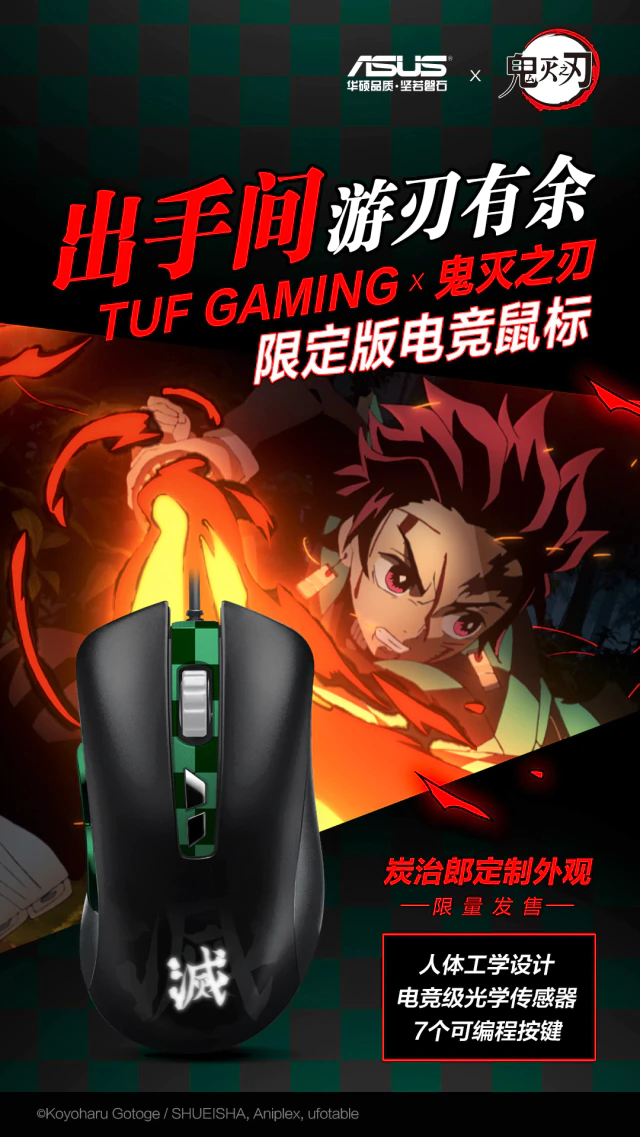 ASUS ROG China는 일본 만화 귀멸의 칼날 : 무한열차(Demon Slayer: Blade of Demon Destruction)에서 영감을 받은 새로운 제품 라인을 공개합니다. 새로운 제품은 옐로우, 그린, 핑크색의 3가지 색상으로 제공되며, 각각의 제품은 만화 속 캐릭터 중 한 명을 전담합니다.