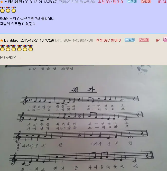 ㄹㅇ 동요 애국가 불렀을듯 잘못하면 애국심이 부족하다 이러면서 회초리로 종아리 맞고