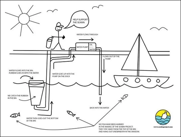 그리고 쓰레기통 바닥에 파이프에서 여과 장치를 통과하여 해수 만 바다로 다시 돌아 가게하는 구조라고 합니다.