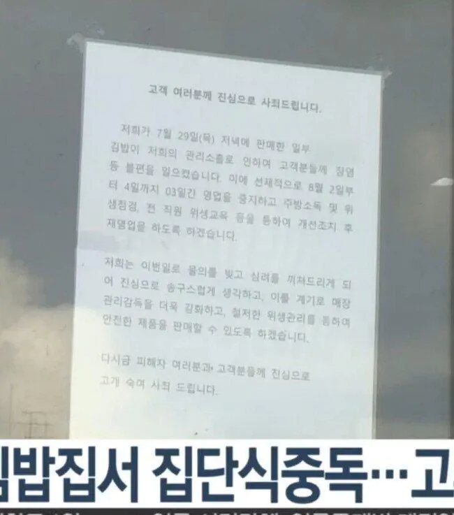 분당 마녀김밤 식중독 사건 사과문