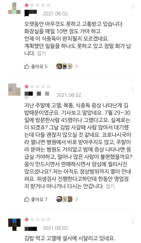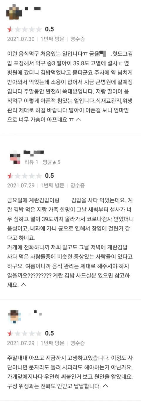 김밥은 특히 조심해야 되는데. 매장에서 이렇게 대량으로 식중독 발생하면 뭐 회생 불가죠.