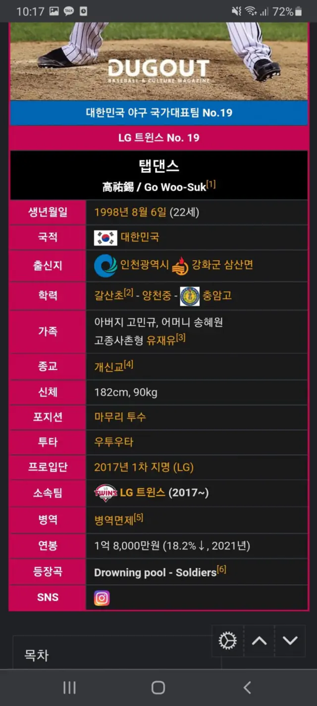 나무위키에도 나오는 고우석 제구력 감독은 몰랐냐? 득점권일때 재구력 쓰레기라고 나오는구만 ㅋㅋㅋ
