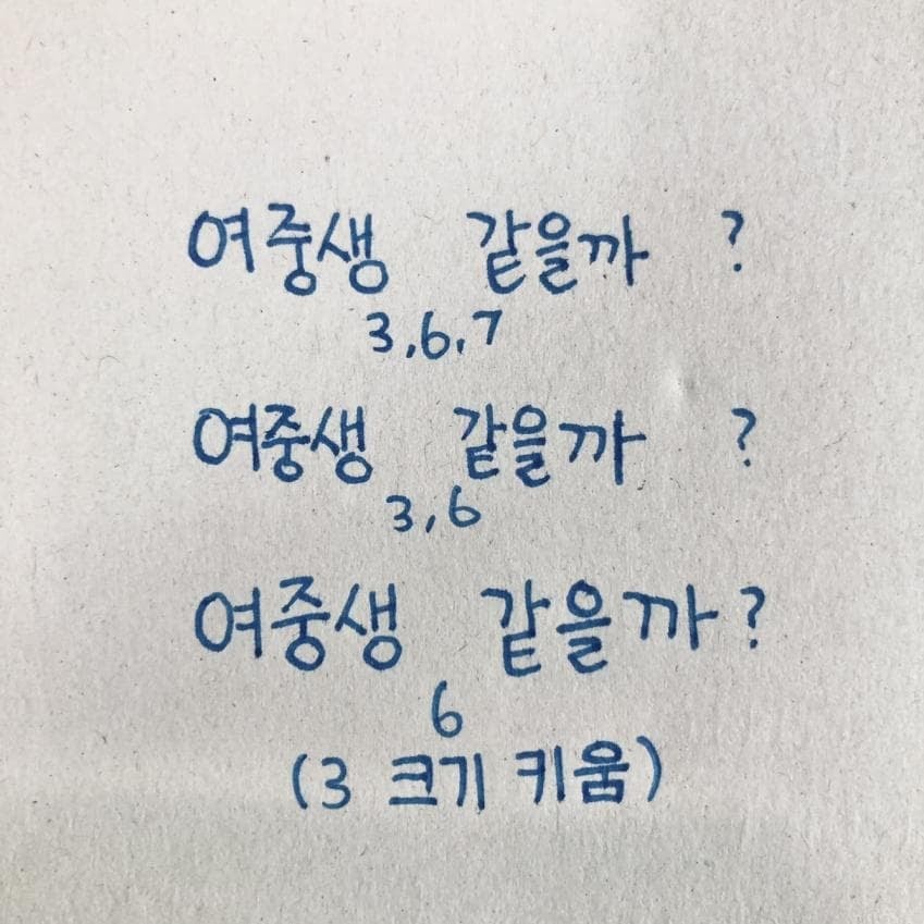크기랑 위아래 수평만 맞춰도 눈에는 들어오니 이거 먼저 해라ㅋㅋ 나도 중딩때 선생님이 글씨 못읽겠다고 쓸때 글씨 크기랑 위 아래 수평 맞춰서 천천히 쓰라고 하더니 글씨체 이뻐짐 ㅋㅋ 습관 들여놔야함