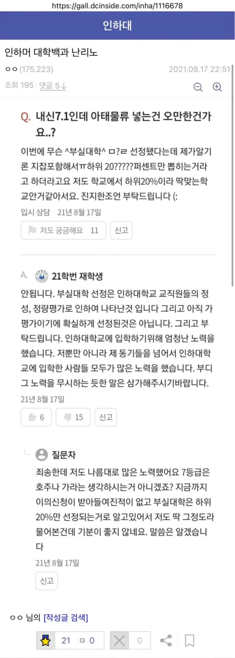 근데 솔직히 인하대보다 부실한 대학 많지 않나? 짜를꺼면 그 대학들부터 짤라야지