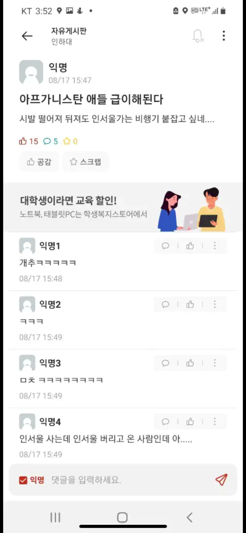 서연고 미만 즉 서성한따리부터 저 인하대꼴 앞으로 날텐데 적당히 조롱해두자 어차피 취업 인하대나 서성한이나 ㅈ박는데