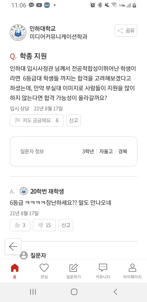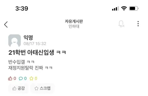 인하대 부실대 확정 에타 반응