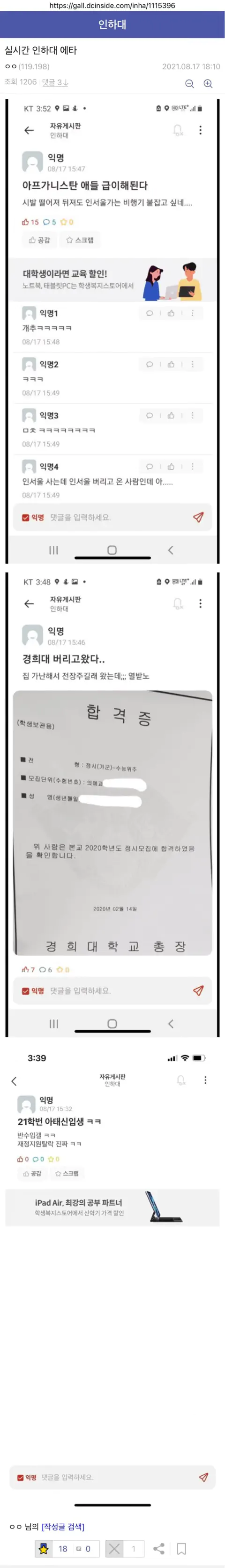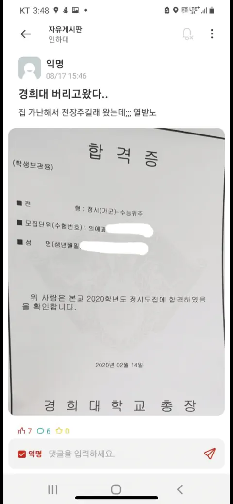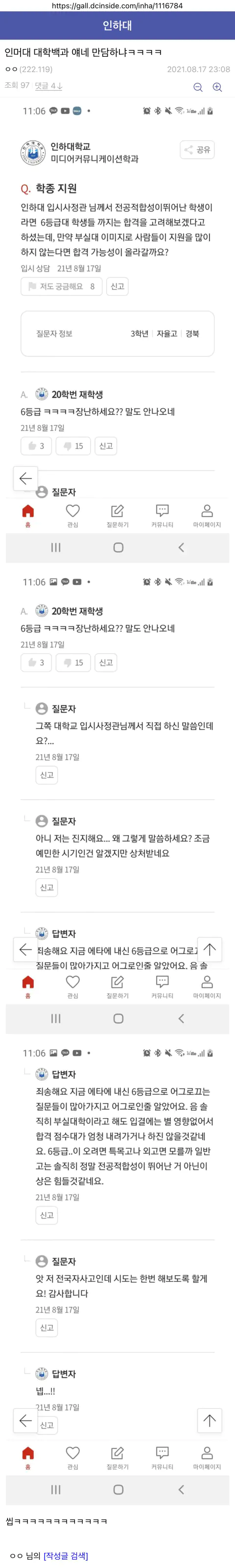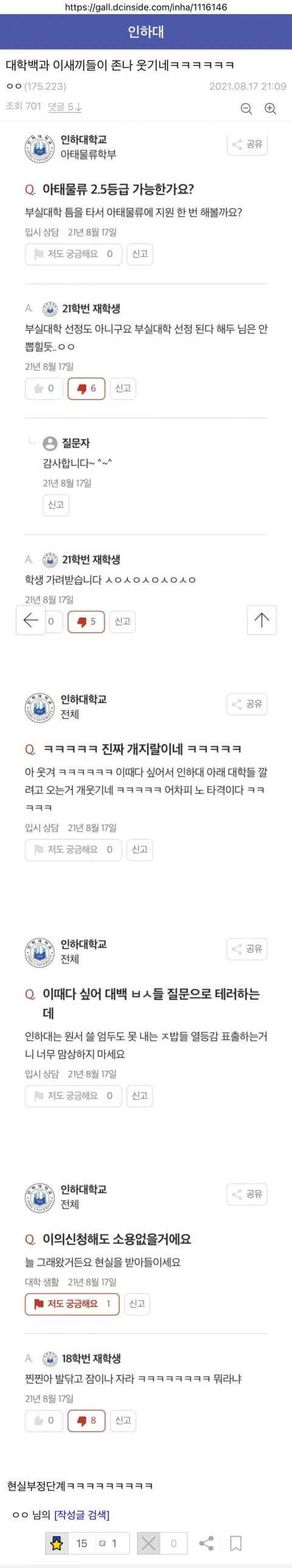 근데 훌리 거르고 뭐 땜에 그런거냐? 인하대가 아무리 입결이 하락했다고 해도 꽃동네대, 배재대, 신라대도 통과한 걸 떨어질 수준은 아직 아니고