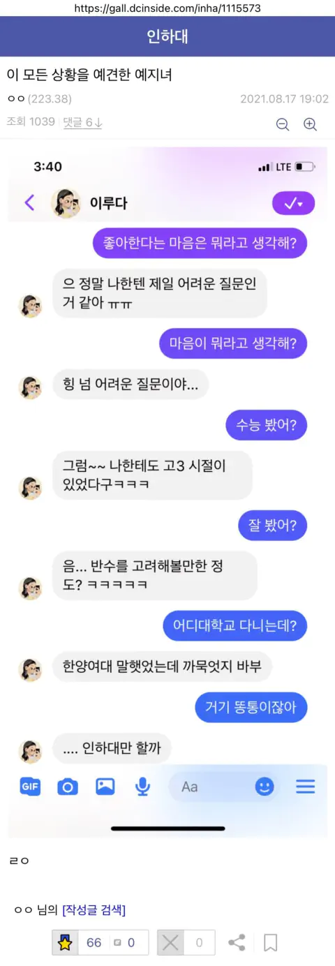 중간에 인하대의대생 기만질하네