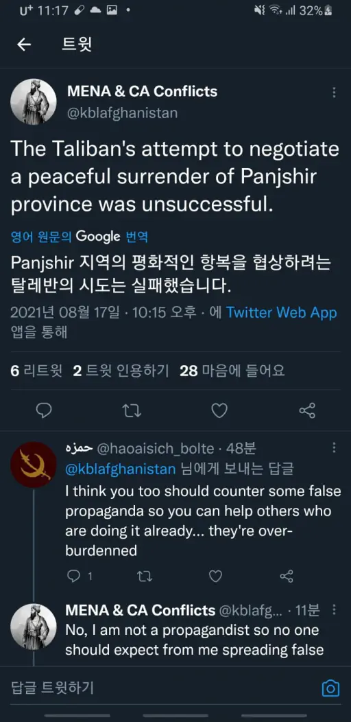 미국 지원은 더이상 못받을꺼 같고, 미군 무기로 무장한 탈레반이 저기로 밀고 쳐들어가면 ㅈ될꺼 같긴한데. 인도가 도와주면 상황 좀 나아지려나.