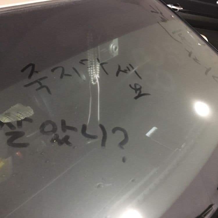 강원랜드 왔다가 주차되어있는 차량들 '죽지 마세요' '살아봐요' 란 말이 눈에 확 띤다