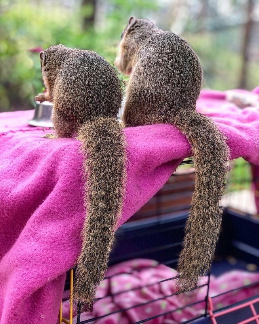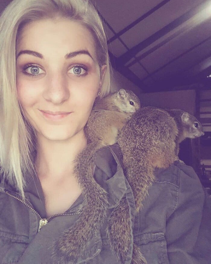 남아프리카의 Simone Serfontein은 엄마 없이 나무에서 떨어진 다람쥐를 돌보다 나중에 야생으로 돌려보냈지만 아침이나 저녁엔 꼭 돌아왔다고 함