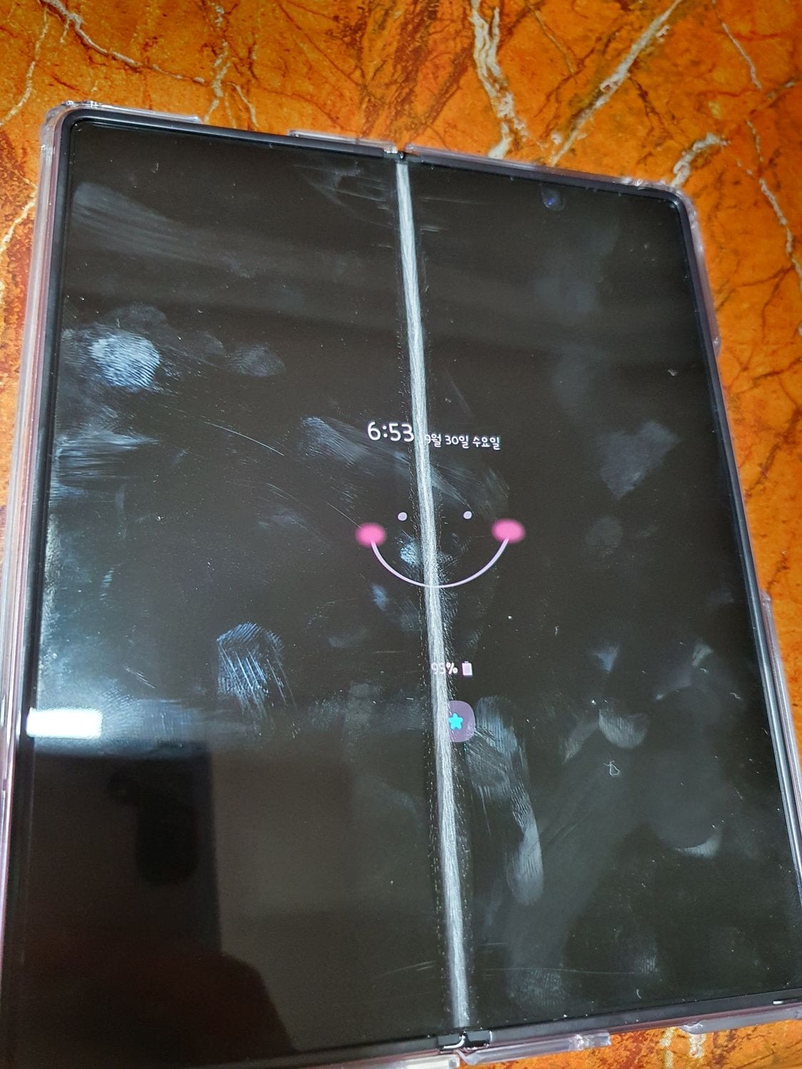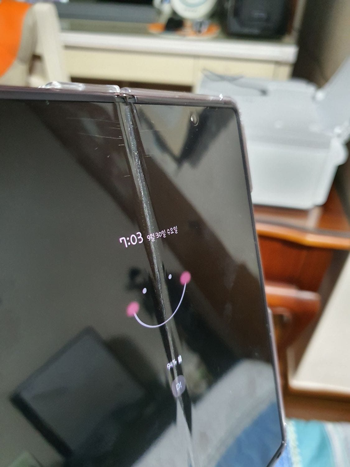 접으면 생기는 현상이래잖어 ㅋㅋ 폴더블 폰 이라고 팔지만 ㅋㅋ