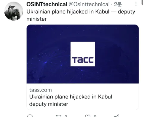 우크라이나 항공기 아프가니스탄 카불에서 하이잭 당함