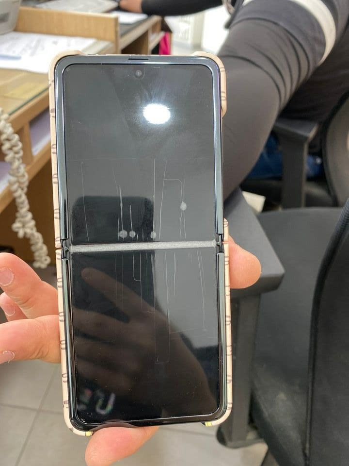 갤럭시 Z 플립을 사고나서 바로 폰을 접자마자 디스플레이가 저렇게 깨졌다고 한다.