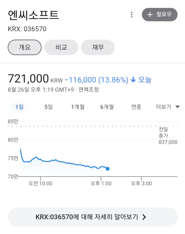 엔씨 지금 들어가지 마라 ㅋㅋㅋ 더 내려간다 지금 들어가지 말랬다 ㅋㅋㅋ