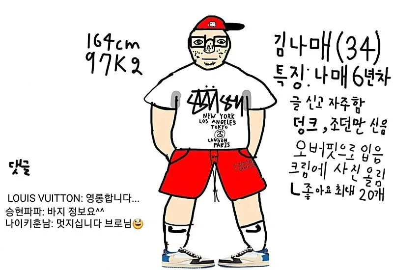 모르긴 몰라도 그림 짤에 신발은 조던 1 덩크 로우? 지싶은데 저거만 다르네 저거까지 똑같으면 특정성 성립 고소 먹을까봐 바꾼건가 ㅋㅋㅋㅋㅋ