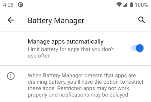 특정 앱이 너무 많은 배터리를 소모하면 OS가 감지하여 자동으로 제한을 걸어버립니다.