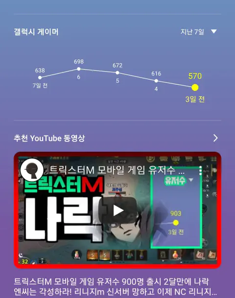 갤럭시게임 유저수 그래프 기울기로서의 지표지. 퍼플유저 몇% 폰유저 몇% 이렇게 비율이 있을꺼고 그 폰 유저에 해당하는 사람들의 유저수의 등락인데 대충 비슷하게 가는거지 기울기는