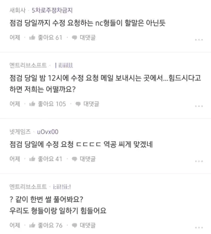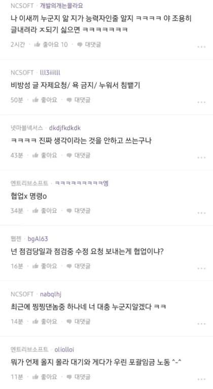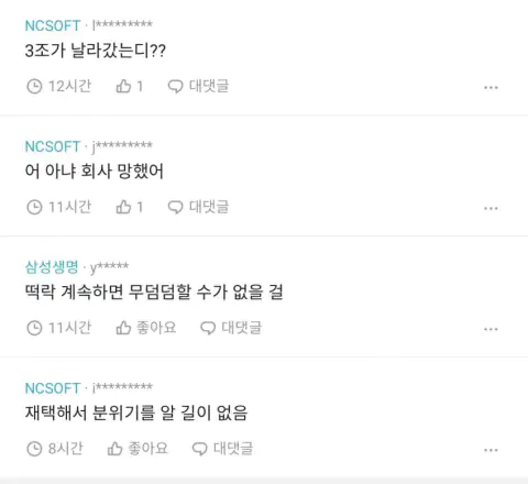 확실히 지금 엔씨 분위기 좆되겠네ㄹㅇㅋㅋㅋ 개침울해져있을듯