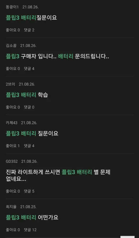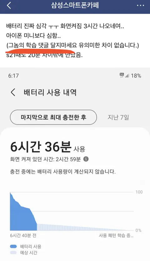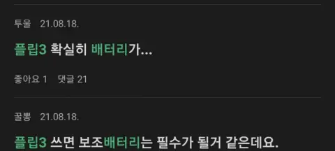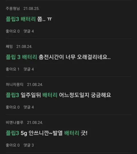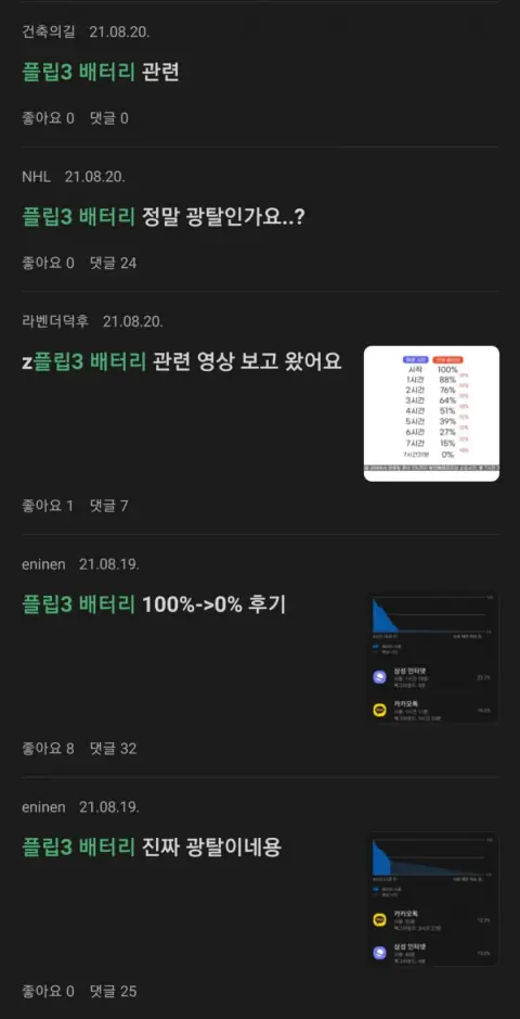네이버 삼성 스마트폰 카페에 올라온 갤럭시 Z 플립3 배터리가 너무 빨리 닳는다는 글
