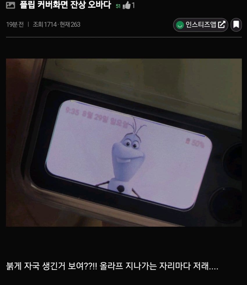 갤럭시 Z 플립3 전면 커버화면 잔상 문제