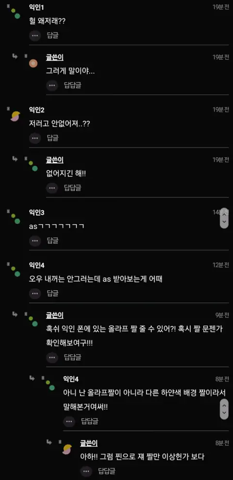 힌지 뚝딱거리는 거, 그 뭐 검은 점, 번인인지 잔상인지 하여튼 키보드 남아있는 거, 액정 끝부분 약간 우는 것처럼 보이는 거, 가운데 검은선 생긴 거, 화면 이상한 거 등등등 나 불량 글 너무 많이 봄 사전예약 어떡하지 폰 오려면 멀었는데 아