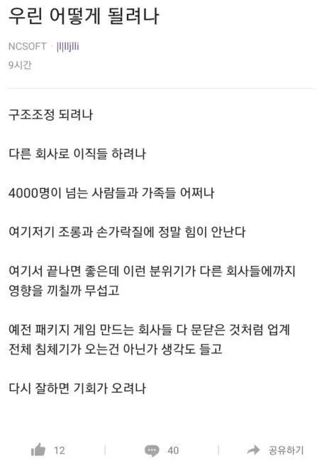 엔씨 서버통신쪽 팀들은 다 이직때리고 낭낭하게 받아먹는데 컨텐츠 기획쪽애들은 고로시당할예정 ㅋㅋ
