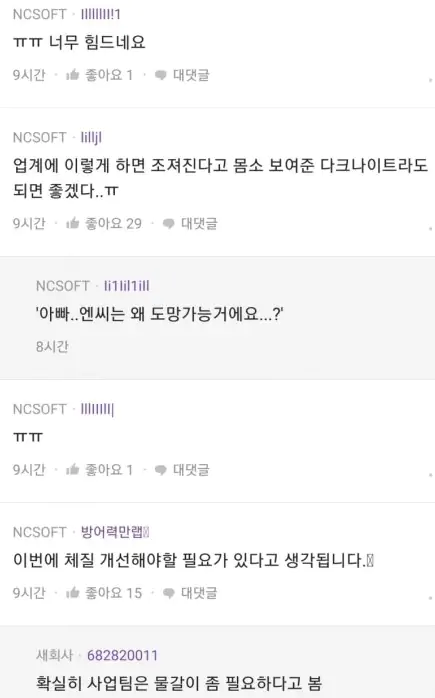 NC소프트라는 회사는 R&D 투자 규모는 덩치에 비해서 존나 큰데 나오는 겜 꼬라지가 시발임