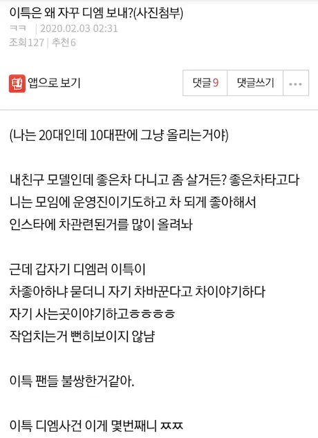 그건그럼 ㅅㅂㅋㅋㅋ 아니 뭐 대화해보고 안맞으면 빠이빠이하는거지 대화거는거 자체로 지랄하는건 참.... 물론 이특이 ㅅㅅ목적으로 dm보낸거 같긴 함.