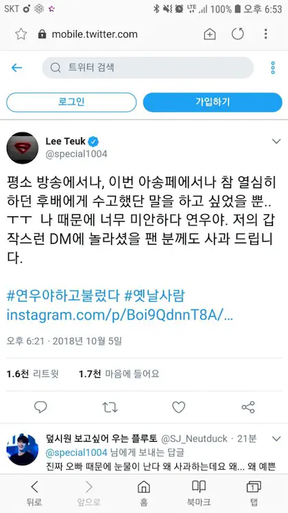 이특이 성매매를 했냐 약먹이고 버닝썬을 했냐 성폭행을 했냐 무슨 남자가 여자한테 말걸었다고 "사귄대요~ 사귄대요~" 놀리는 수준으로 웃음거리 만드는거 웃기네 ㅋㅋ 남자새끼가 여자한테 작업 좀 걸수도 있지